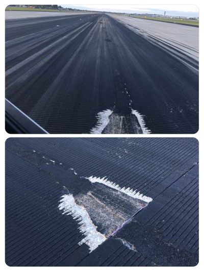 Spalled longitudinal runway crack repaired 4 years before invention of Resurf® Joint Forming and Sealing System*-Type 4. Complete Separation (down to the first course of reinforcement) of the "two slabs" must be achieved using Type 4 and black silicone caulk. Meandering cracks and all joints must be converted into effective expansion/contraction joints.